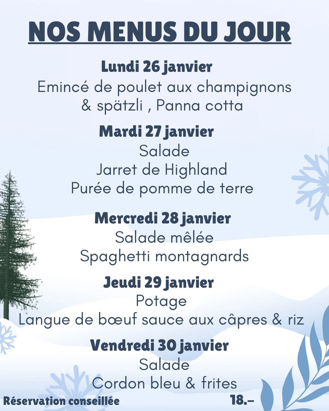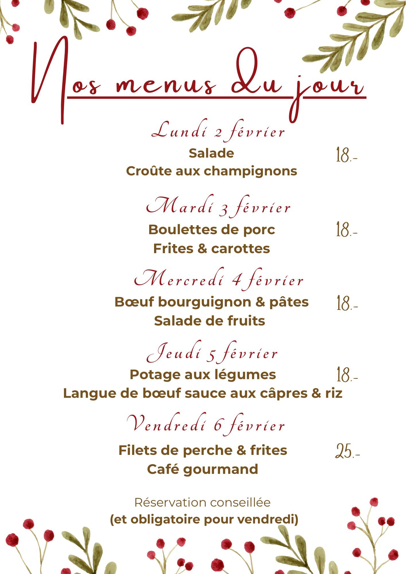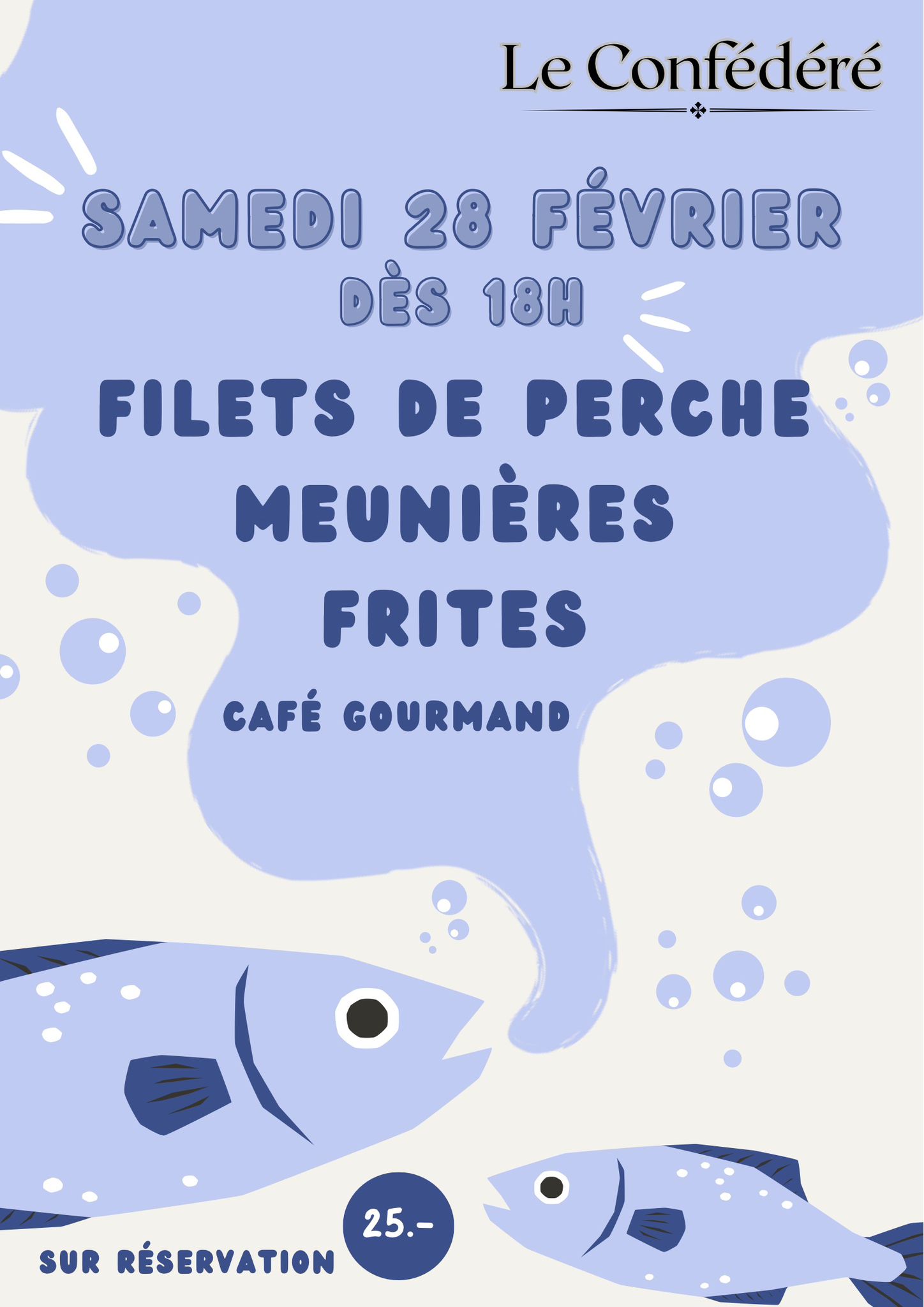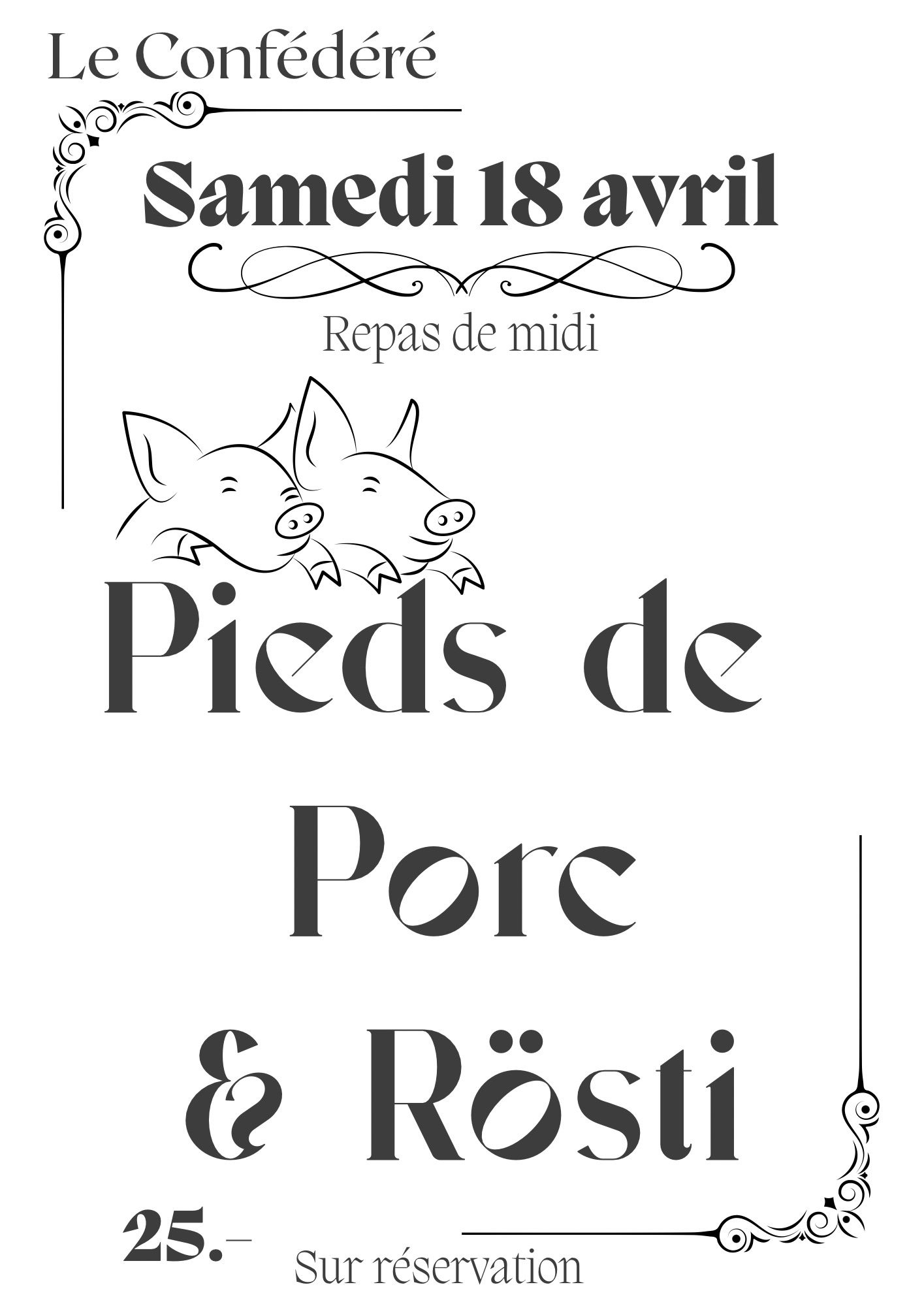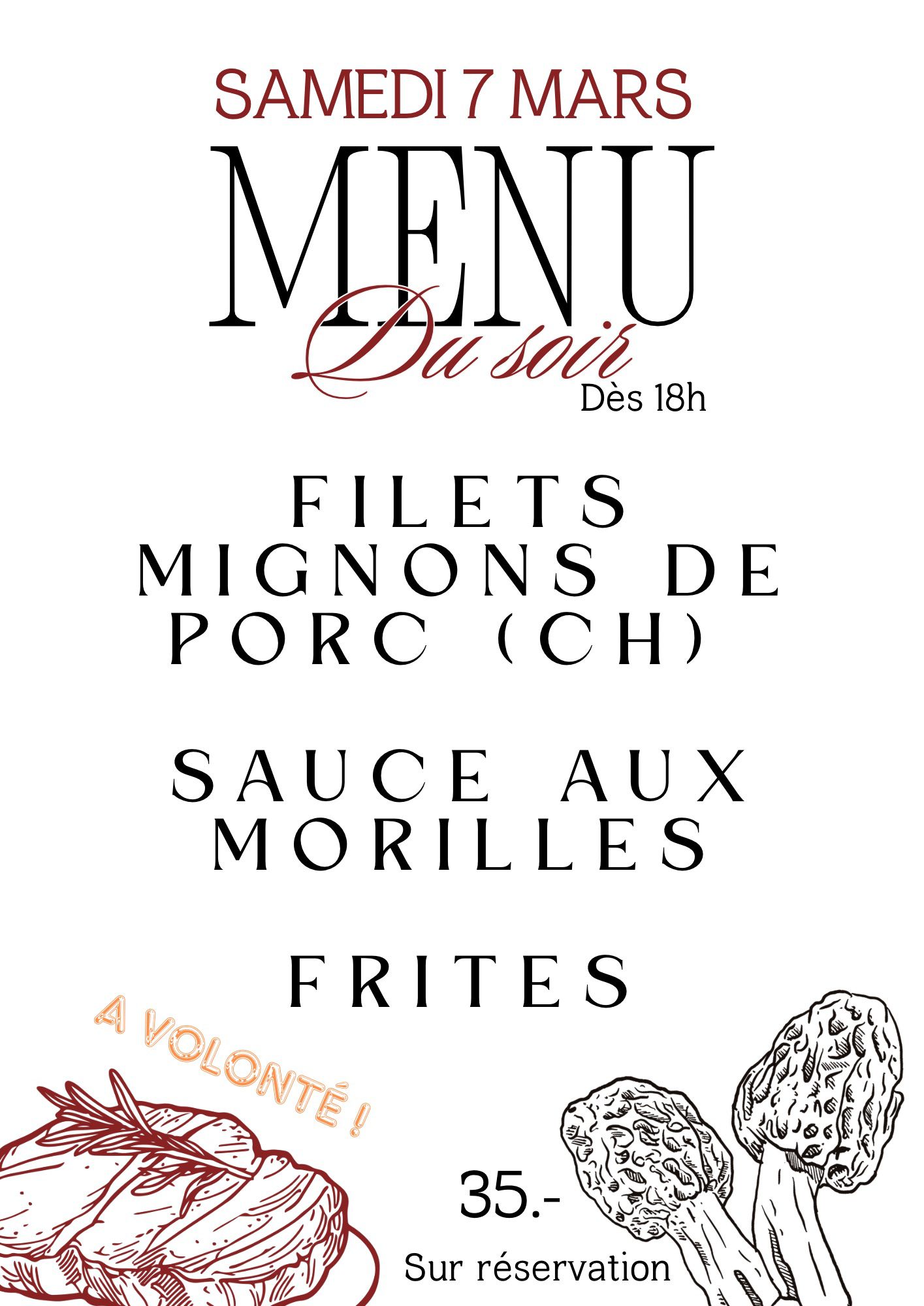 Tous les vendredis, le Confédéré propose, dès 19h30, son rôti avec sa sauce aux champignons. Accompagnement variable de semaine en semaine: frites, gratin ou pâtes.