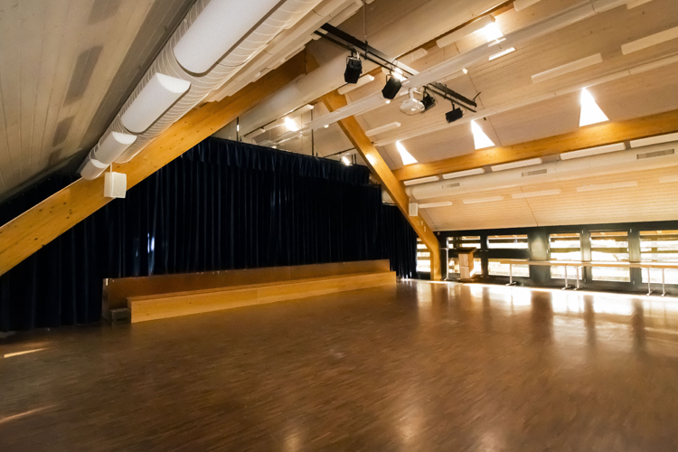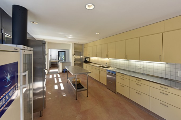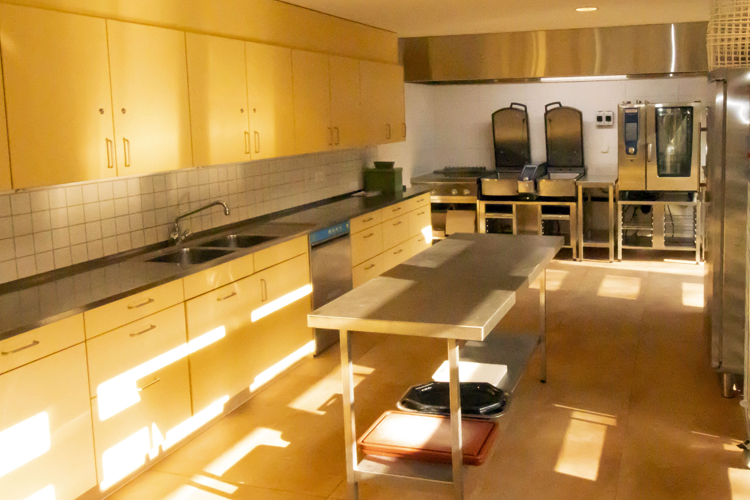 Pour les petites réceptions, il est également possible de louer uniquement le foyer au rez-de-chaussée, ensemble avec la cuisine, à un tarif plus avantageux.