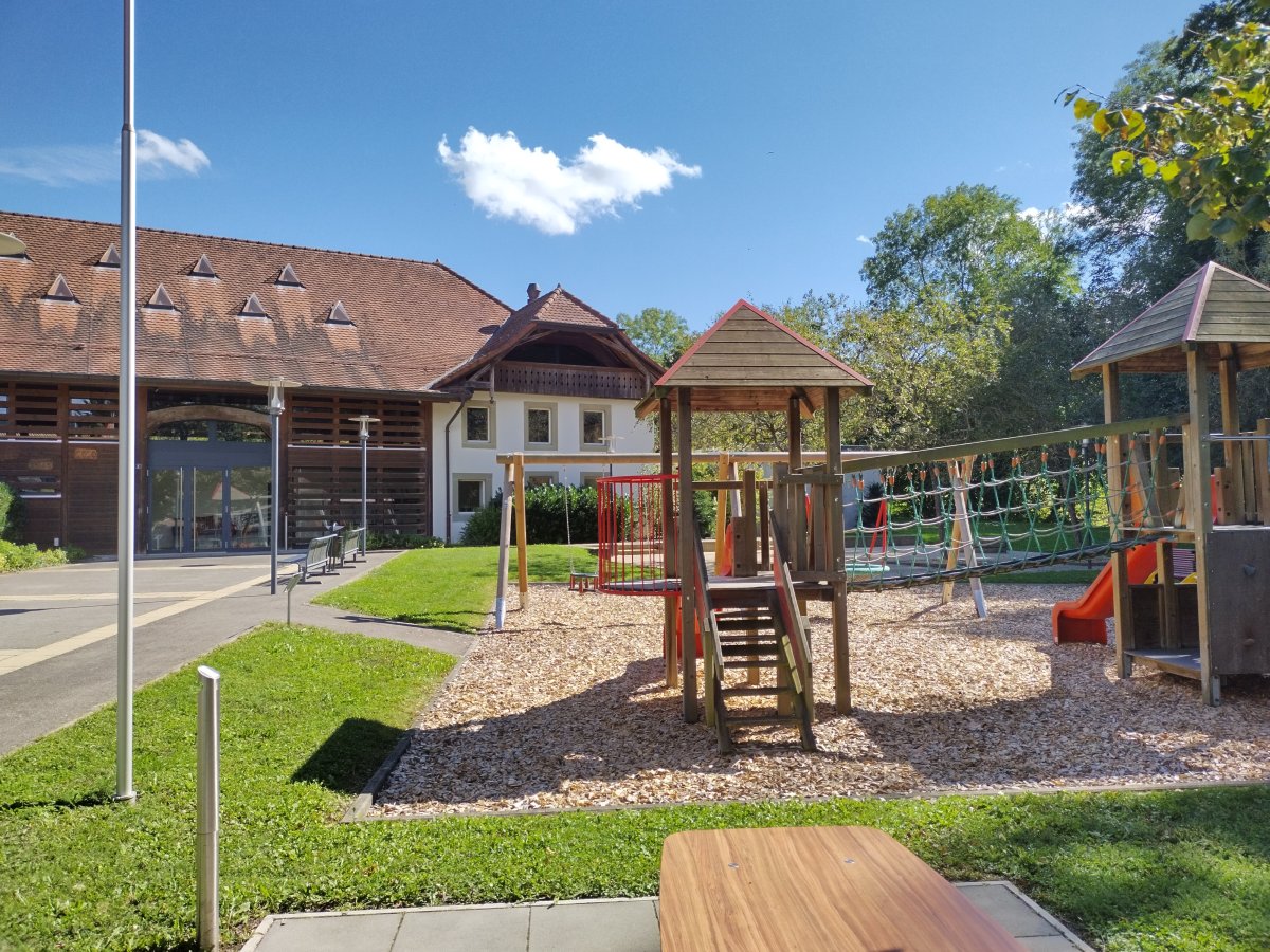 En outre, une terrasse et une place de jeux se trouvent juste devant l’entrée et une quinzaine de places de parc sont à disposition derrière le bâtiment.